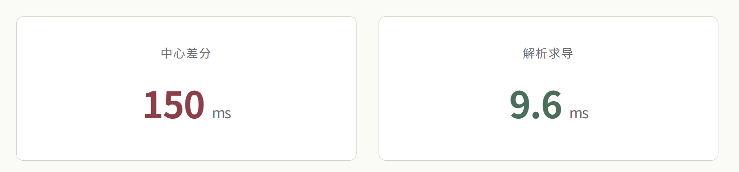 | 指标 | 数值差分(旧) | 解析求导(新) | 提升倍数 |