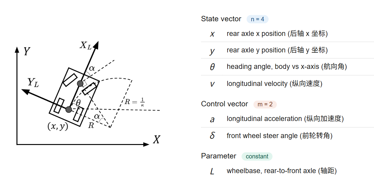 状态 ,控制 (加速度和前轮转角):