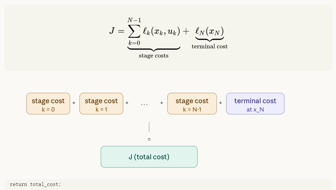 代价函数衡量一条轨迹的"好坏"。它由两部分组成: