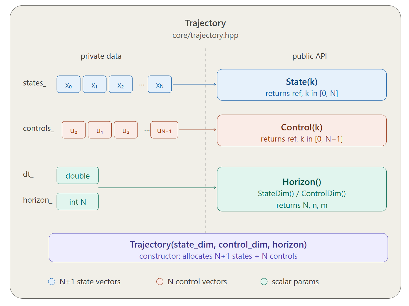 对应代码(include/core/trajectory.hpp)的核心接口: